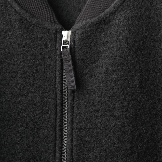 同じくウールフリースで、ボンバージャケット型、ブラック。