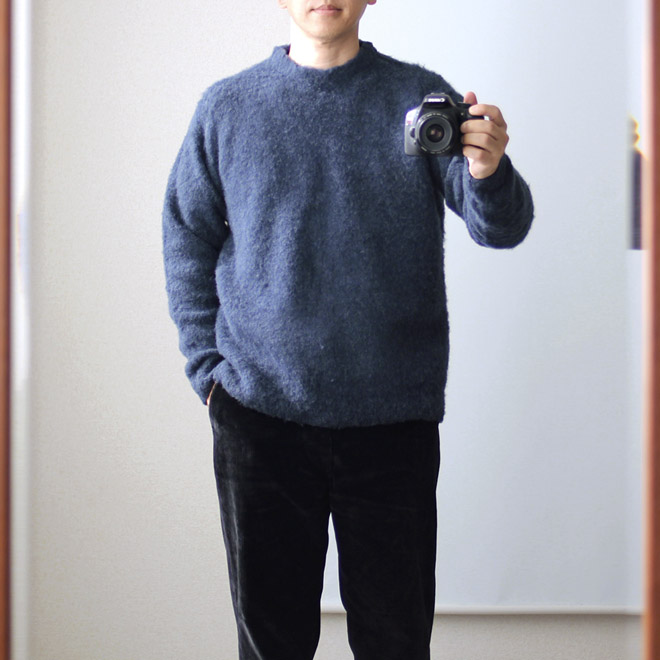 現代型シルエットで、ハイゲージの上品系で、しかも編地も微妙に薄くし過ぎずのバランスにしてくれて、たしかに、これは探しても他には無いであろう、価値の高いアイテムであると感じられます。