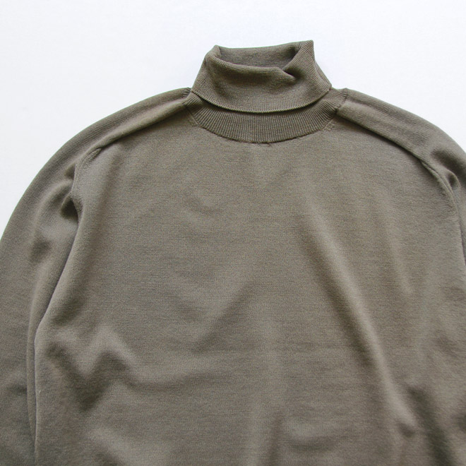 ハイネック (タートルネック) のハイゲージニット。