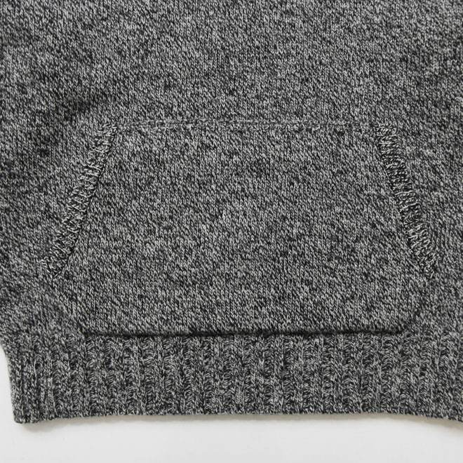 特徴的なショールカラーはバランスの好いフォルムで、襟まわりをセンス好く演出し、カンガルーポケットも単独着の際に嬉しいディテールです。