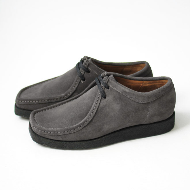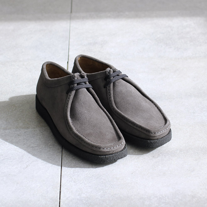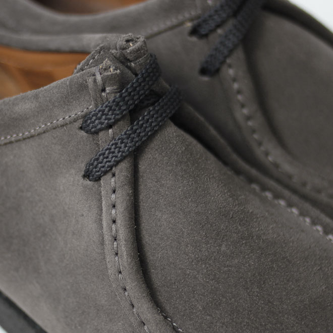 上質なカウスエードのアッパーレザーにハンドのモカシンステッチ、天然ゴム素材のクレープソールが特徴の、クラシックなカジュアルレザーシューズとなります。