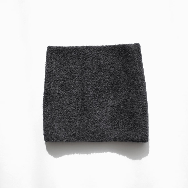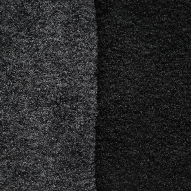 パイル状の表面でモコモコした質感が特徴のブークレ素材、袋縫いの二重構造となっています。