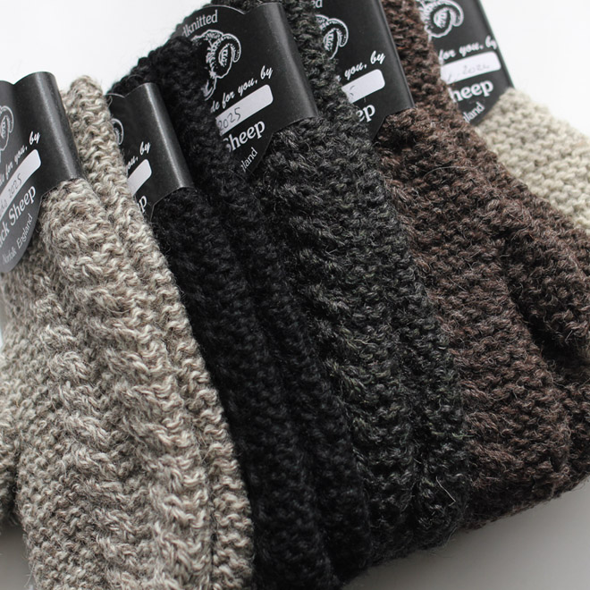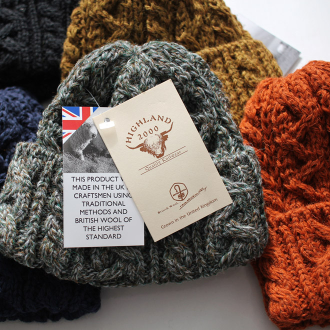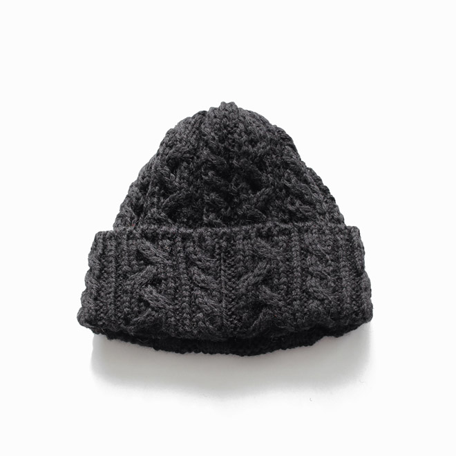 まずは昨年の好評を受けてのアゲイン、ケーブルのニット帽。ケーブル編み、浅めのニットキャップ。