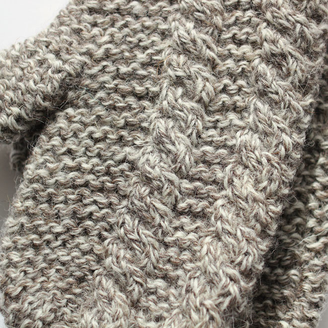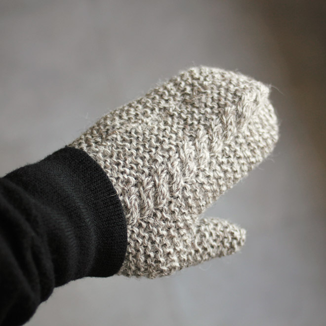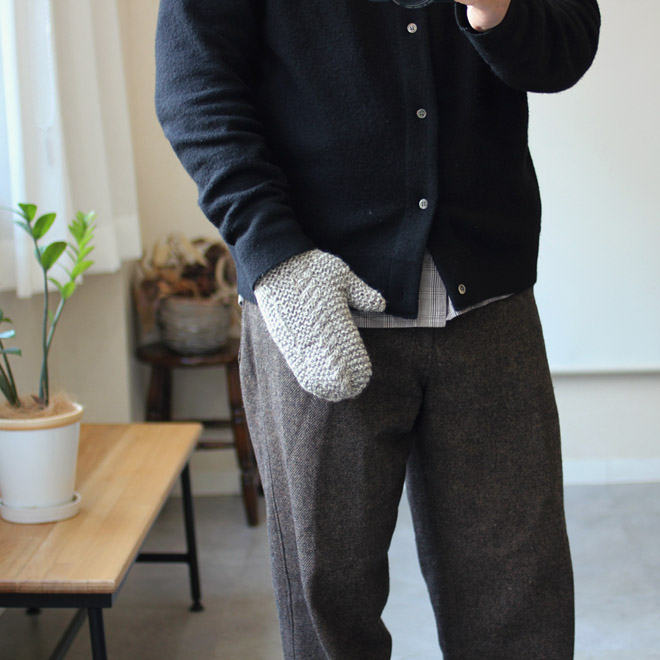 どういう原理か分かりませんが、マシンニット製品群の方が急激にプライスアップが進んでしまい、ハンドニットとたいして変わらないくらいになってしまっており、どうせならということで、より味わい深いハンドニットのミトンを選んでおります。