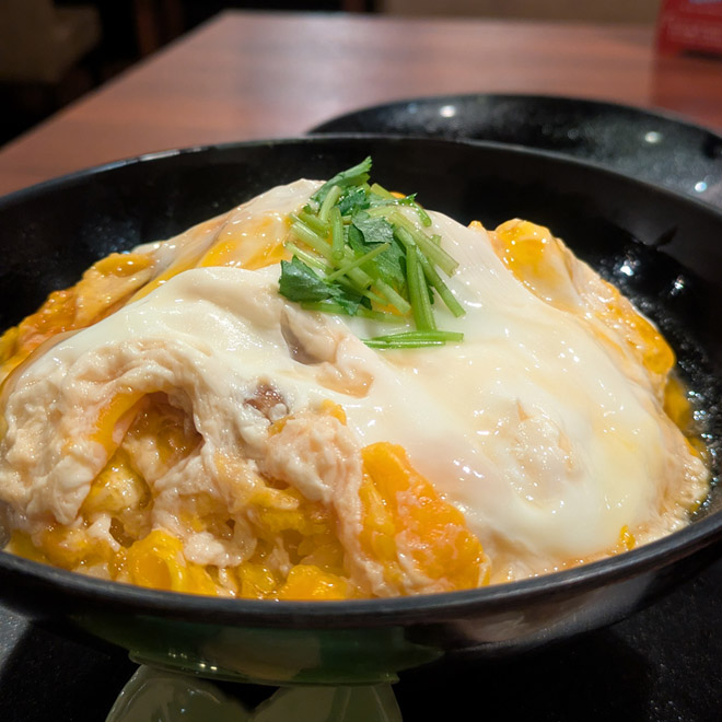 ふわふわの卵に、柔らかな鶏肉。鶏肉は炭火焼きという本格派。炭の風味がしっかり分かるくらい感じられます。