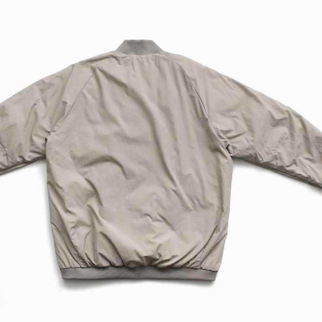 シンプルなブルゾンスタイルで、さっぱりとしたデザイン、ディテール。シェルも薄地でウエイトの軽いものが使われていますので、ジャケットそのものが軽く、その軽さが印象の軽さにもつながります。
