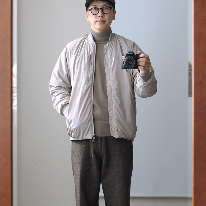 インに普通に厚いものを着込めるし、上からアウターを羽織ってもルーズ過ぎてもたつきがすごいということにもならず、非常にいいところで着地していると感じます。