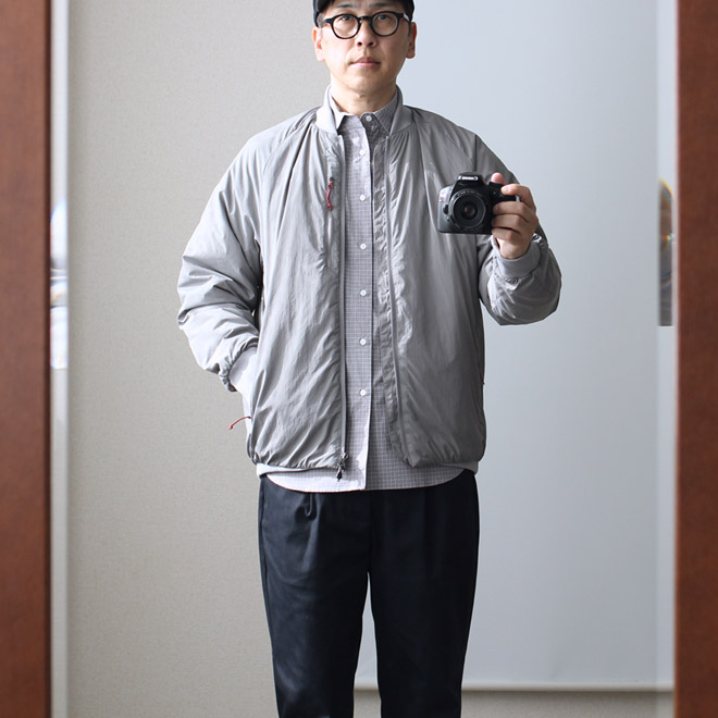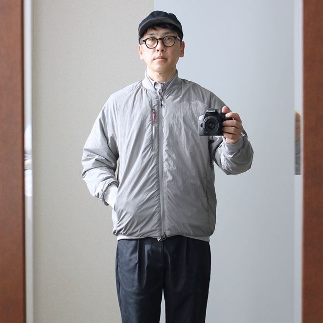 春アウターとして設定してくれているということで、フットワークの好さが際立ちます。春も秋も、上からさらにアウターを羽織って、ミッドレイヤードでの活用も調子が好く、寒暖差の多い時期も多いですから、一発勝負型の分厚いアウターより、重ね着で温度調節ができる方が助かることも多いと思います。