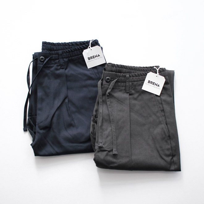 ゆったりした穿き感とすっきりしたルックスを兼ね備えた、オールマイティな BRENA のイージーパンツモデルです。カジュアルなイージーパンツですが、生地使いやディテールワークによって、クラシックなテイストが備わります。