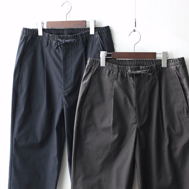 イージーパンツとしてカジュアルに使っていただけますが、クラシックなテイストもあり、ベーシックアイテムという位置づけで、幅広い着こなしで使っていただけると思います。