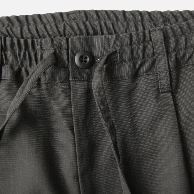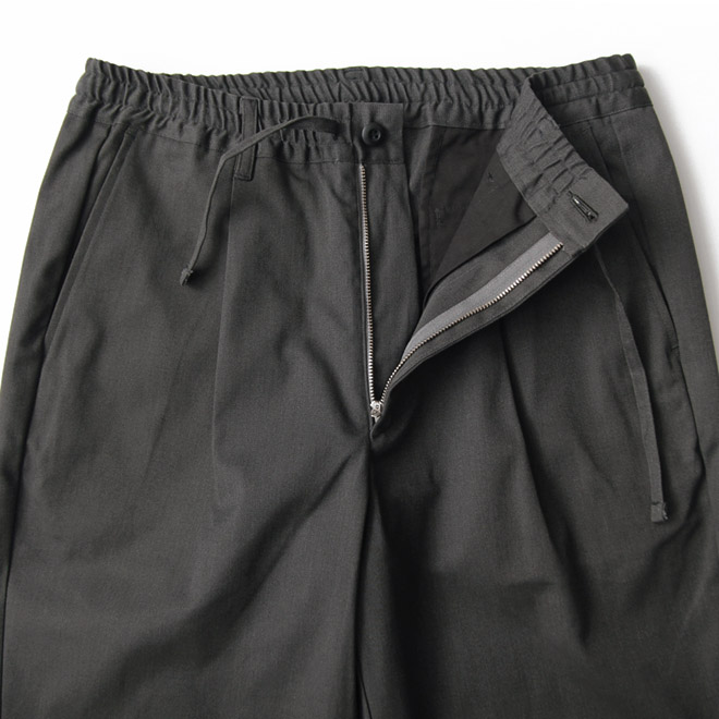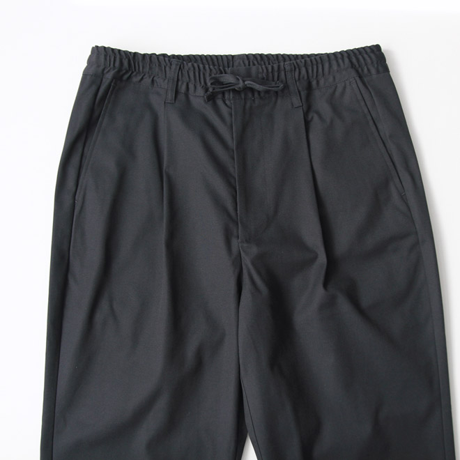 ウエストはゴム+ドローコードのイージーパンツの仕様、ワンタックが入り、股上は深めのつくりです。