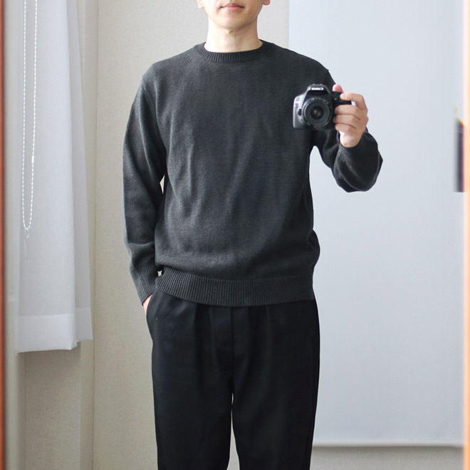 やはりニットウェアということで、カットソーやスウェットと比べると一つお上品な印象になり、きちんと服装に気をつかっています、という雰囲気になるかと思います。