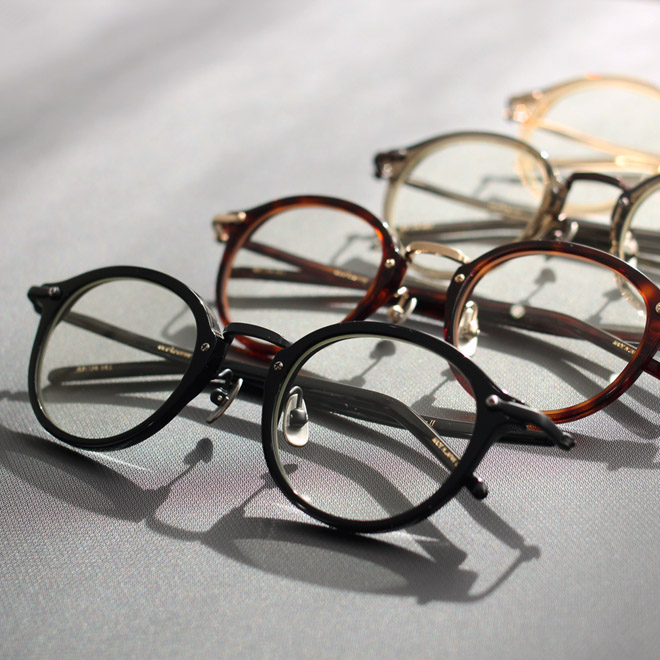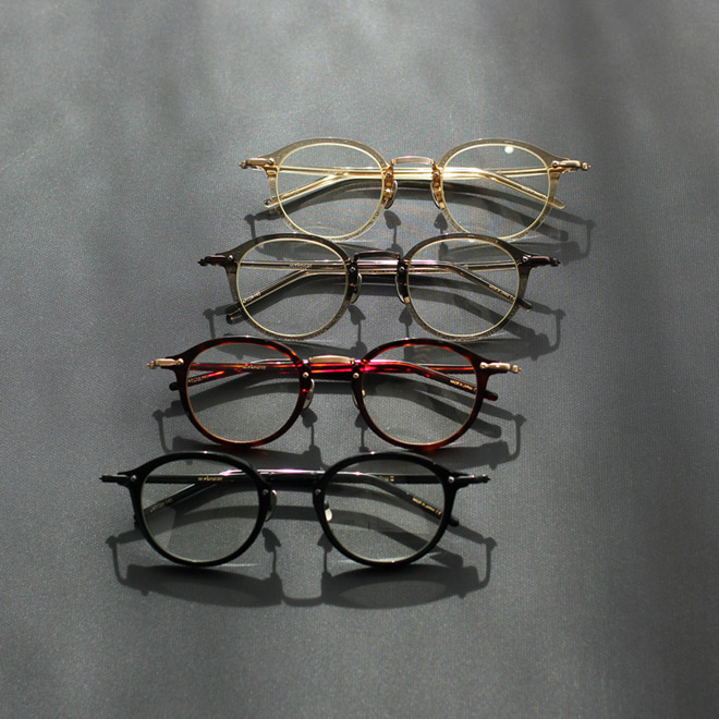 アセテート×チタンの素材コンビ、ボストン型モデルです。