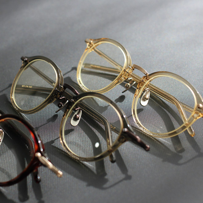 一般的に流通している『セル眼鏡』のほとんどはアセテートですが、アセテート素材もピンキリで、良し悪しの差はかなりのものとのこと。このモデルに使われているイタリアのマツケリ社のアセテートは美しく、奥行きのある発色に定評がある高級素材となっております。