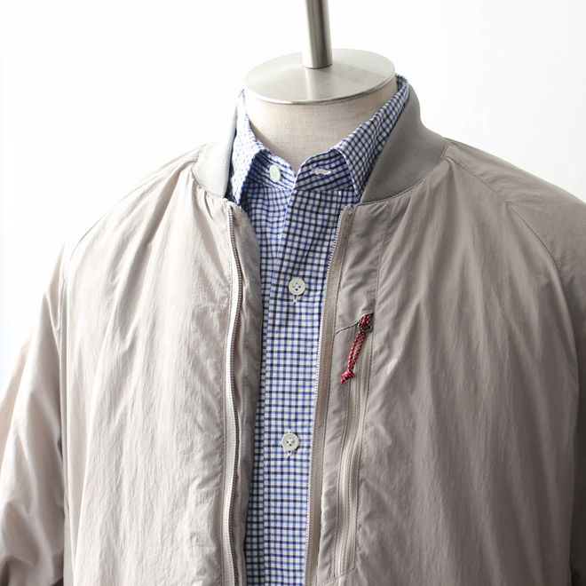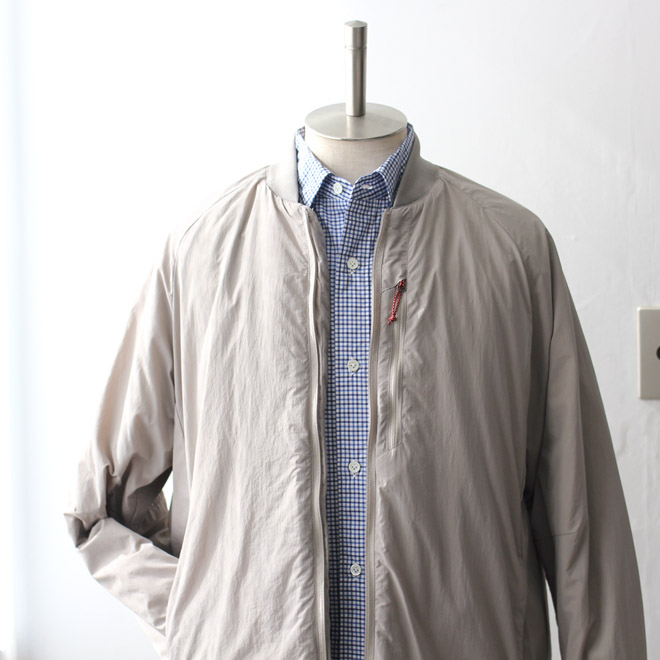 単体でひょいっと羽織るだけでも、いい感じのバランス感なので、コーディネイト的な使い勝手が抜群で、さらにこの下にスウェットを入れたり、あるいはこの上からスプリングコートを羽織ったり、機能的にも使い勝手の好さを感じていただけるはずです。