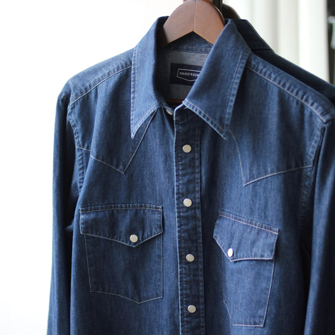 HAND ROOM より、ブランド定番モデルのデニムウエスタンシャツが入荷しました。