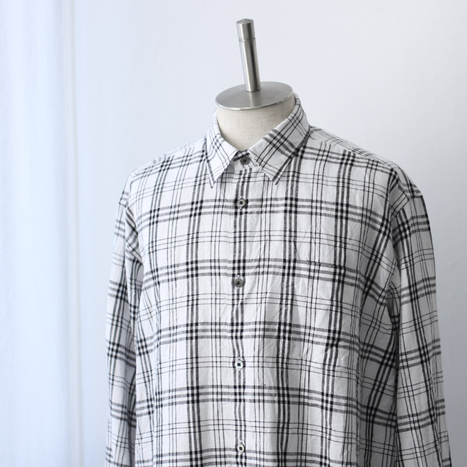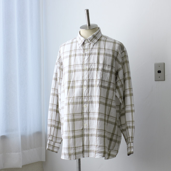 今年のビッグシルエットシャツは、リネンチェックがラインナップされていました。とても好い雰囲気だと思います。
