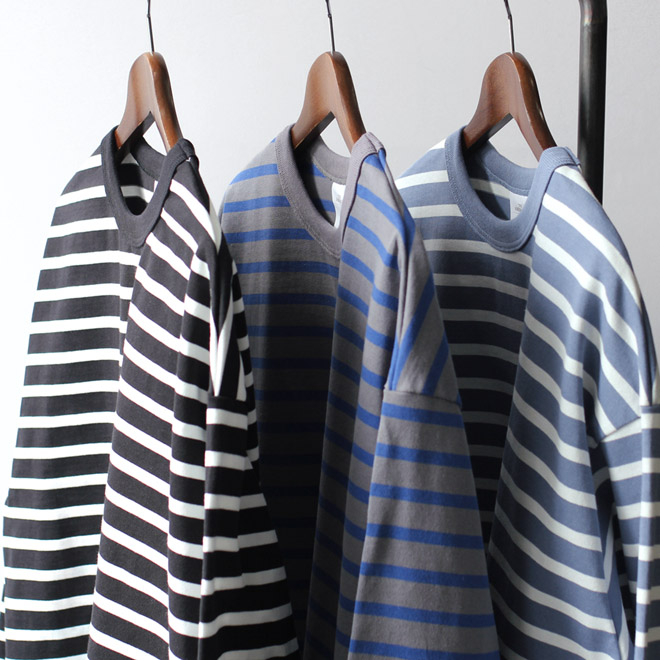厚手コットンのボーダーロンTee、リアルに、デイリーに使える melple らしいアイテムです。