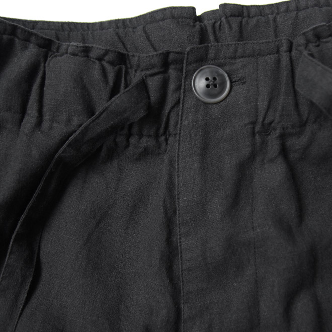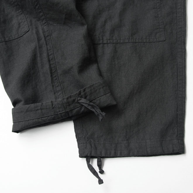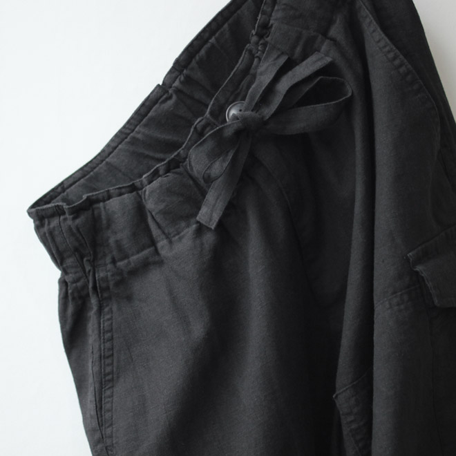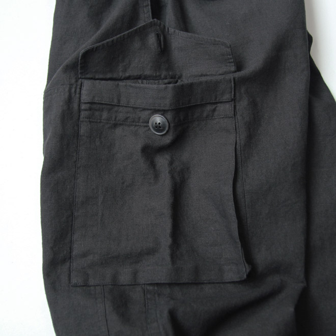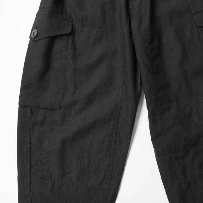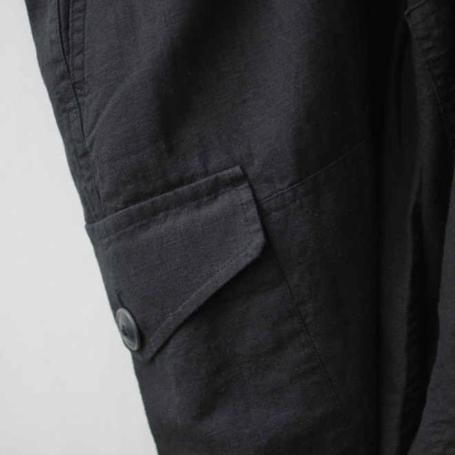 リネン・コットン生地によるカーゴパンツ。