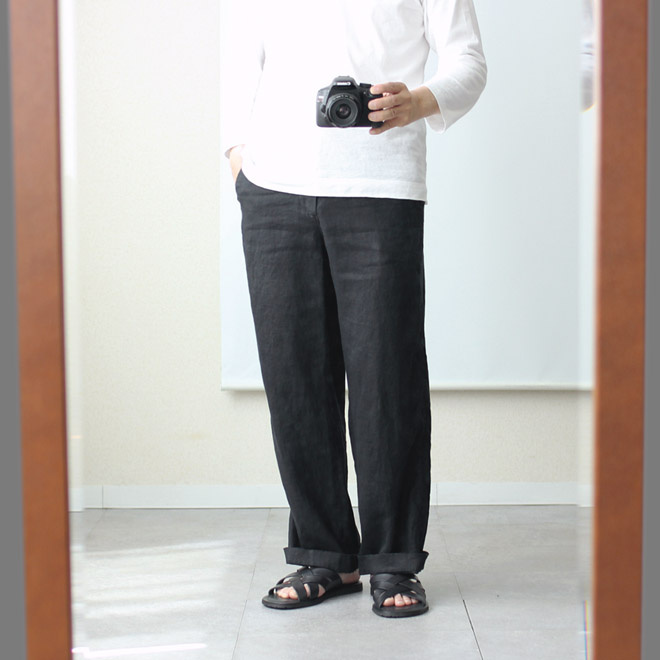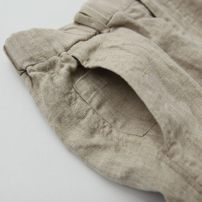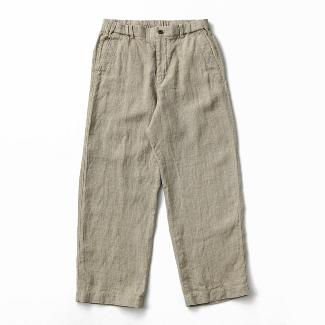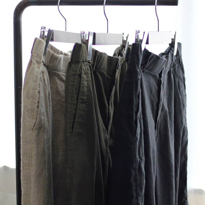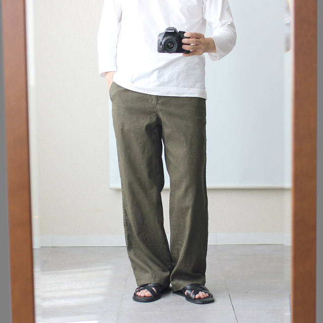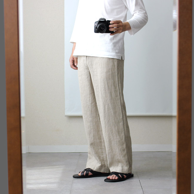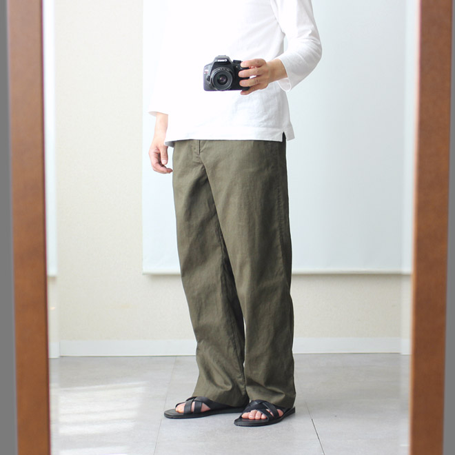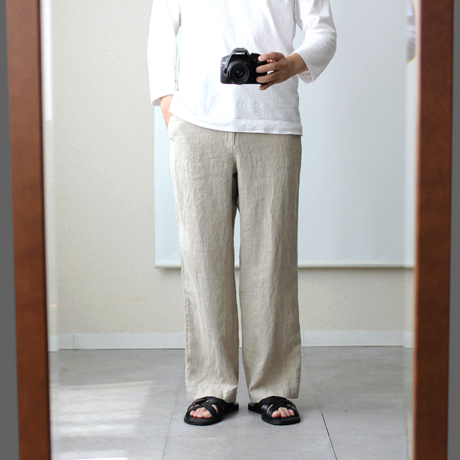 ワークルーツの純朴系ストレートシルエットはナチュラルなリネンファブリックとよく合っているように思います。