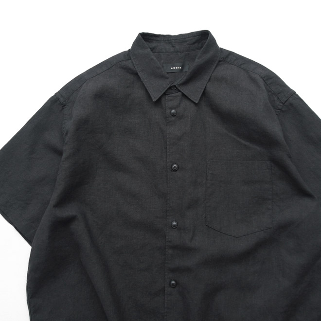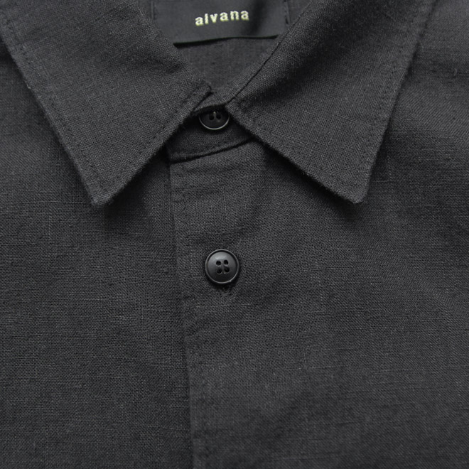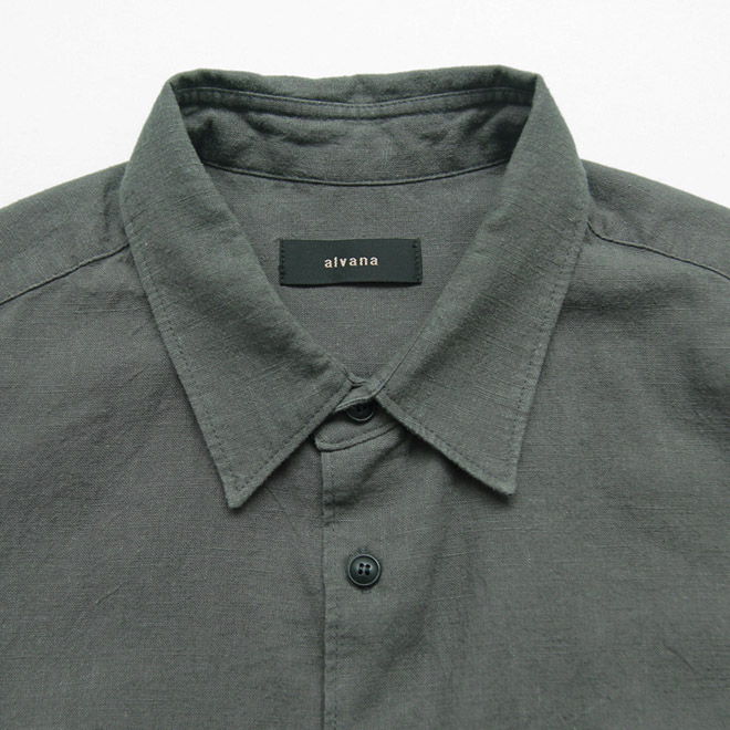 オーソドックスなレギュラーカラーに、すっきりしたフレンチフロント(裏前立て)、たっぷりとした身頃のルーズシルエットが特徴。ラフさとスマートさ、クラシックとトレンド感、相反する要素が同居するような、alvana らしいバランス感と雰囲気でまとめられています。